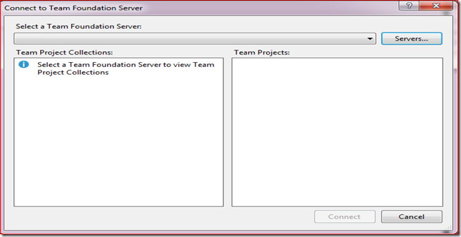 5.Now lets connect to Team Foundation Service using Visual Studio. Go to Visual Studio, select Connect to Team Foundation Server from Team menu or from Team Explorer.